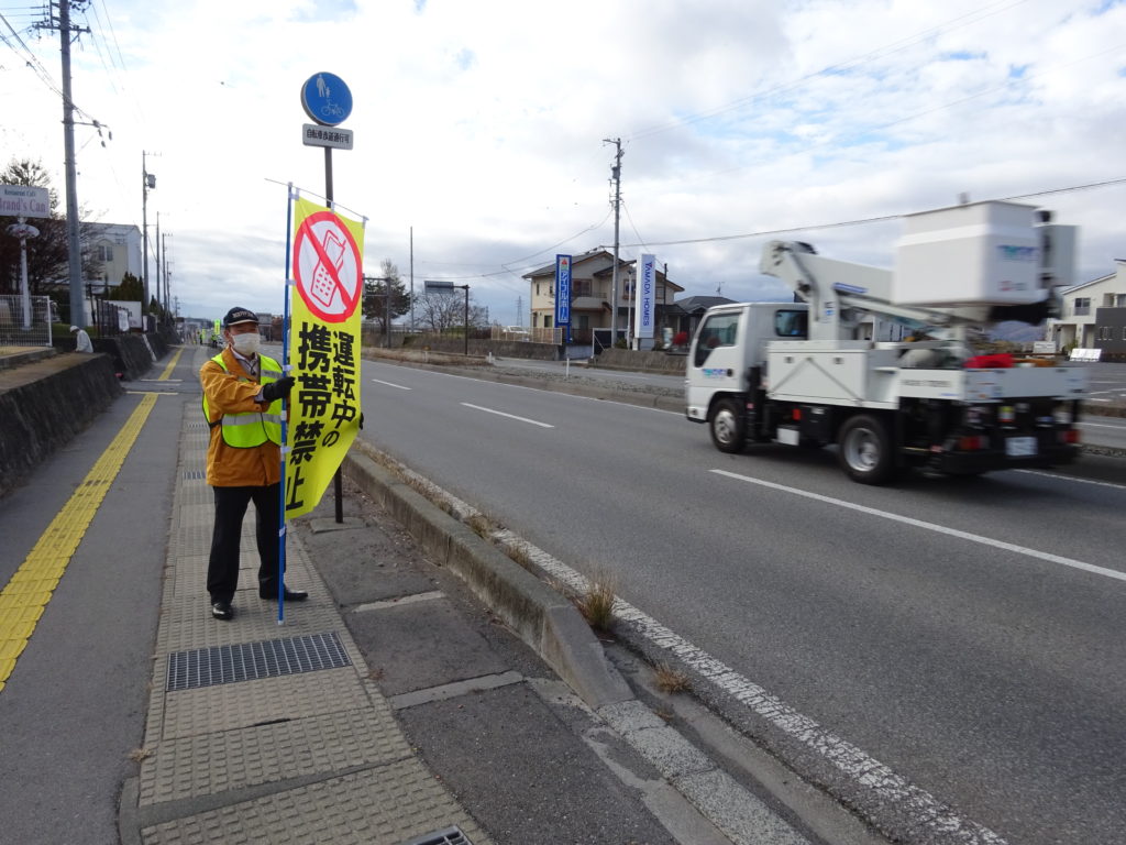 今月も141号線沿いに並び、注意喚起を行いました。