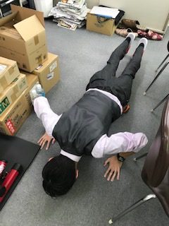 ここまでできない!という時は、膝を床につけて腕立て伏せを行います。