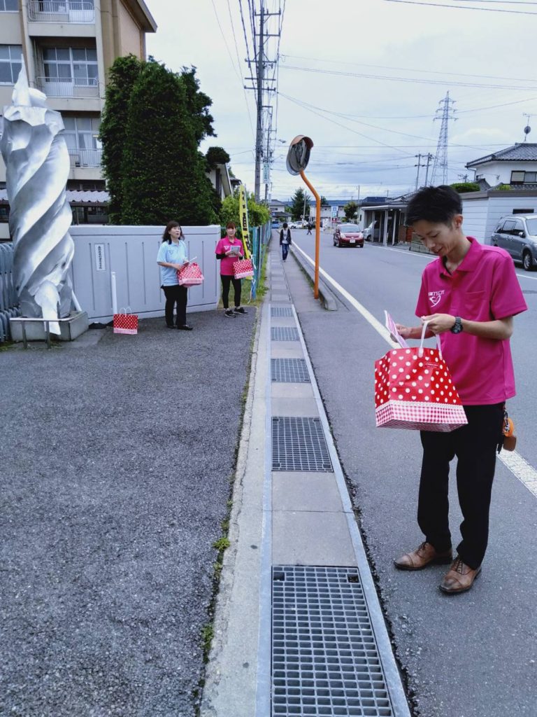 通勤される方にも呼び掛けをし、チラシを受け取って頂きました。