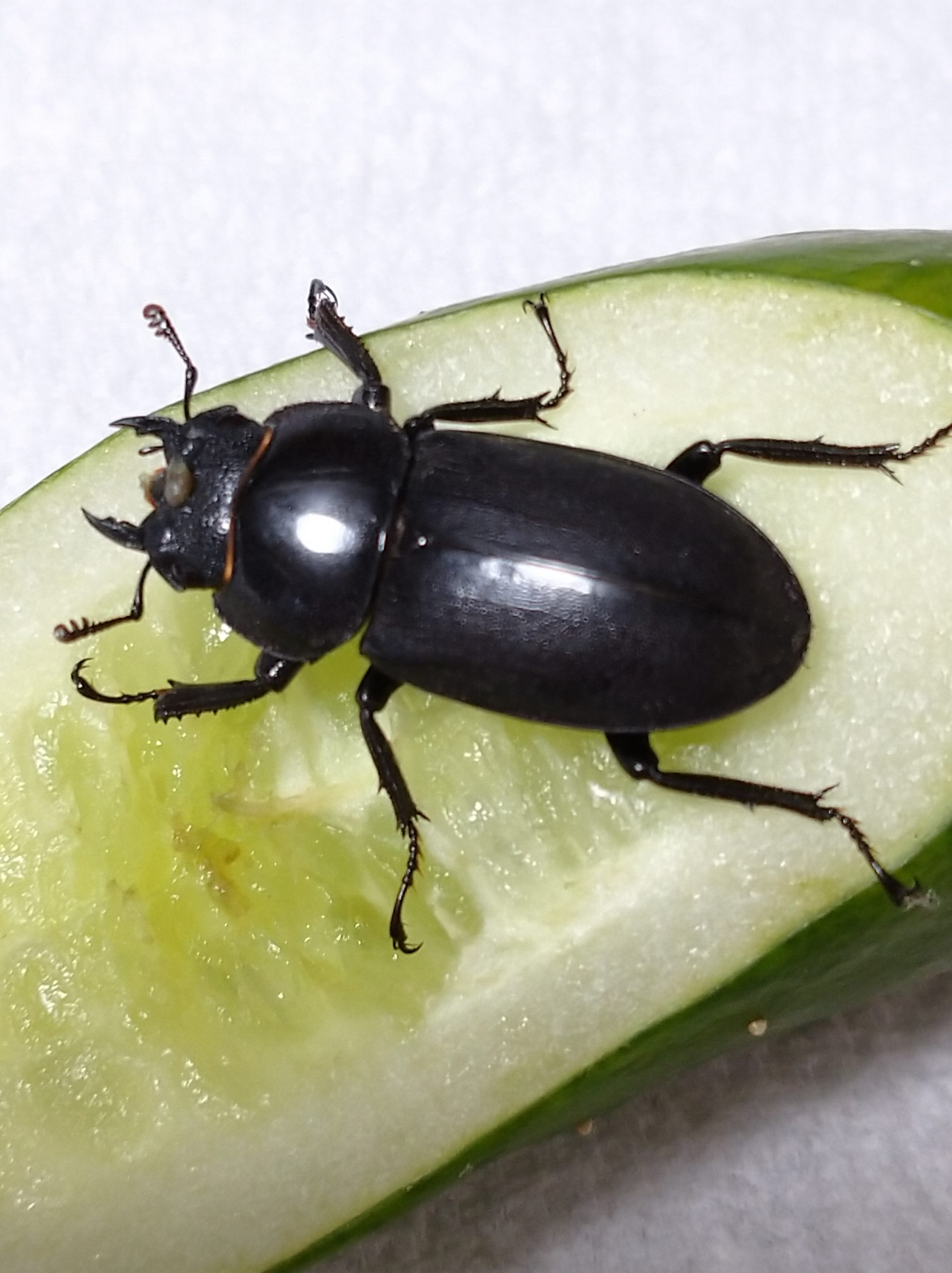 カブト虫系はきゅうりNG ですが、せっかくなので畑で採れたて新鮮で安心なきゅうりに移してやりました。(長い爬虫類は大の苦手ですが虫は大丈夫)