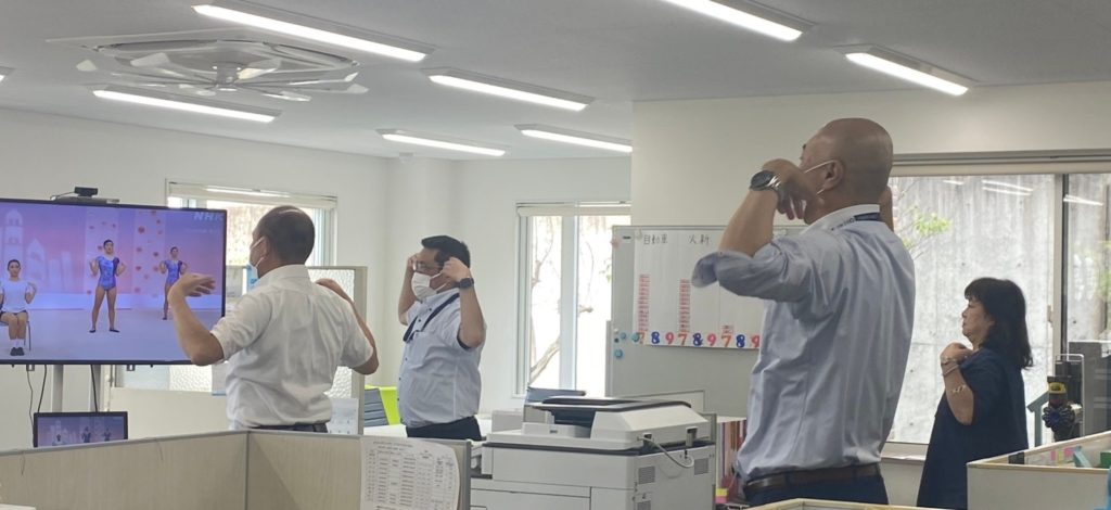 ネクサスでは毎日、朝礼前にラジオ体操を行っています。