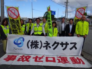 10月11日水曜日、朝事務所前のR141号線沿いにて事故ゼロ運動を行いました!