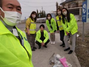 活動情報4月18日 少し前ですが、佐久平店社員皆で、事務所周辺のごみ拾いと、事務所入り口の草むしりをしました。